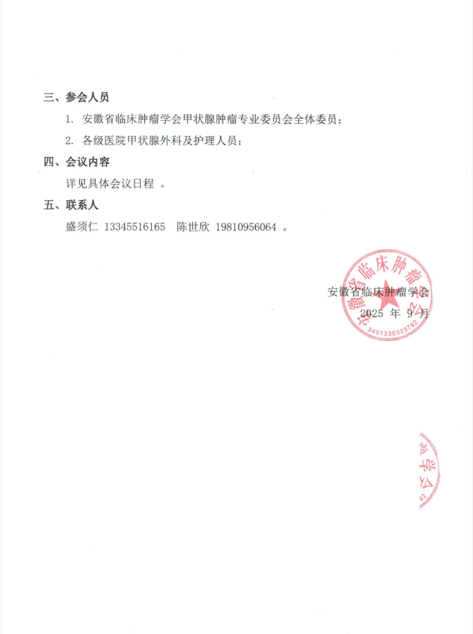 中国科大甲状腺外科学术会议暨安徽省临床肿瘤学会甲状腺肿瘤专委会2025年学术年会会议通知